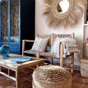 Perfecto para un recibidor, como asiento extra junto a una mesa de comedor informal, en la terraza o porche. Aporta textura, autenticidad y una belleza serena que solo los materiales naturales saben transmitir.