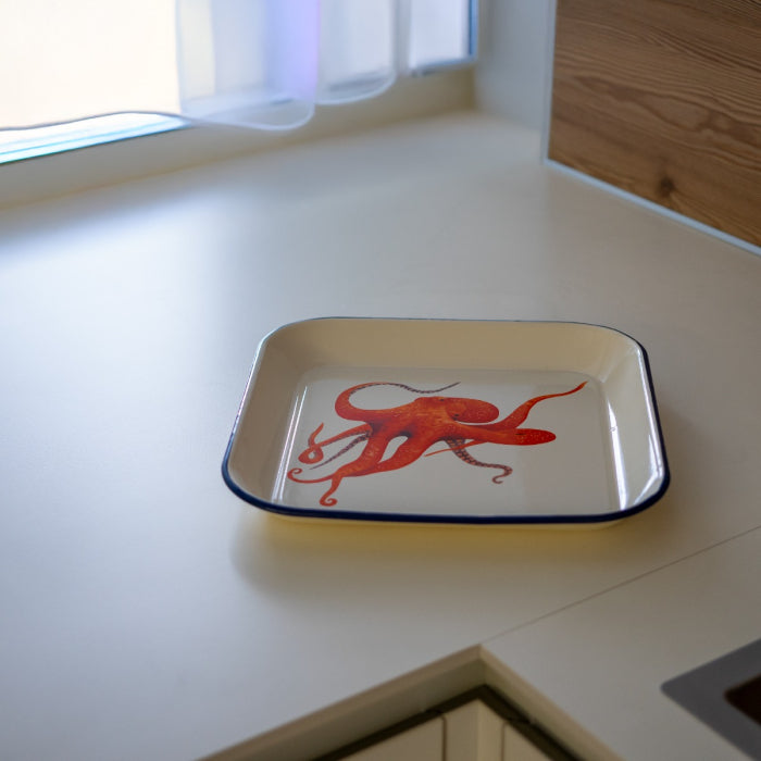 Bandeja de hojalata esmaltada crema. Modelo pulpo