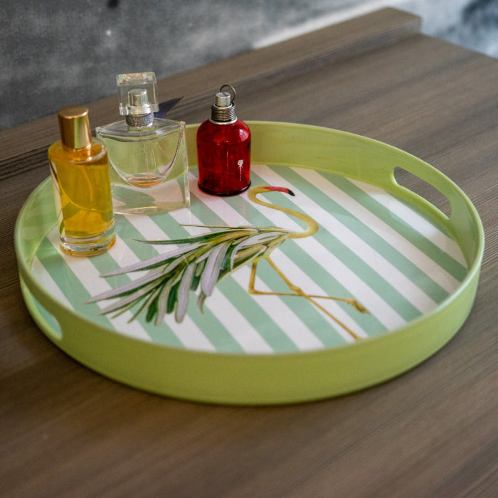 Bandeja con fondo de color y estampado collage. Perfecto tanto como bandeja como elemento decorativo, con sus colores brillantes y sus lindas decoraciones agregará color y alegría a su cocina y su hogar. El material de polipropileno permite una larga vida útil y una fácil limpieza.