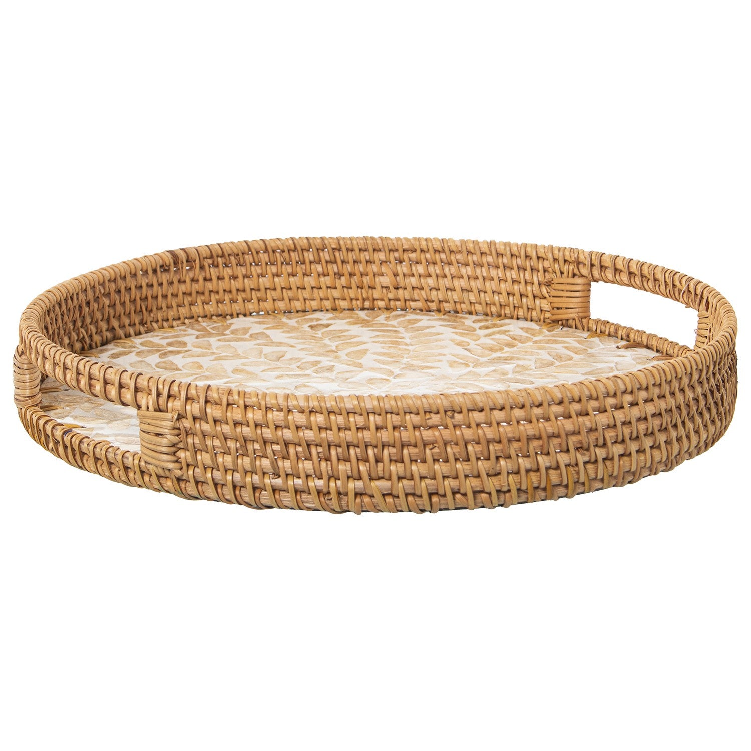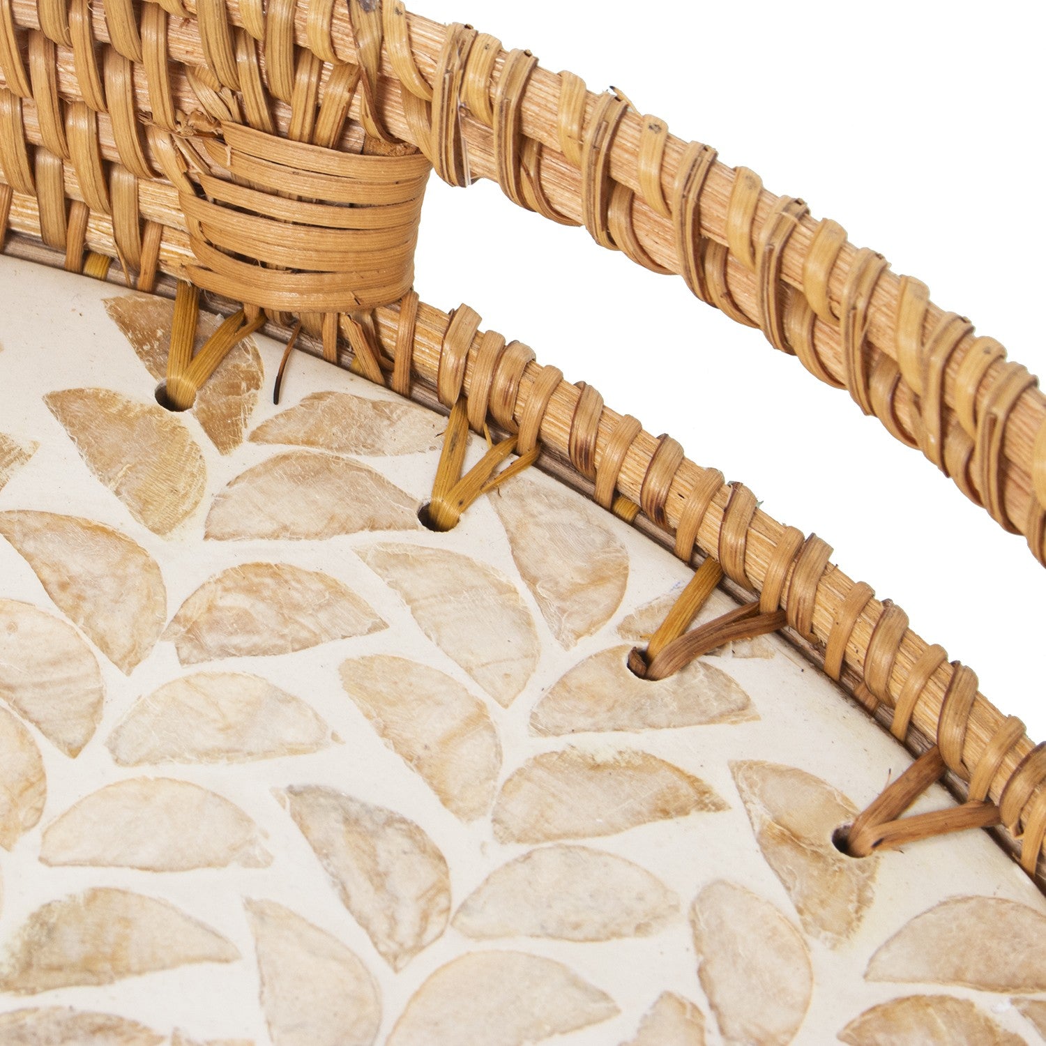 Una combinación natural y elegante. Esta bandeja aporta textura, brillo suave y calidez artesanal. Ideal como base decorativa en mesas, estanterías o para crear composiciones con velas y objetos especiales.
