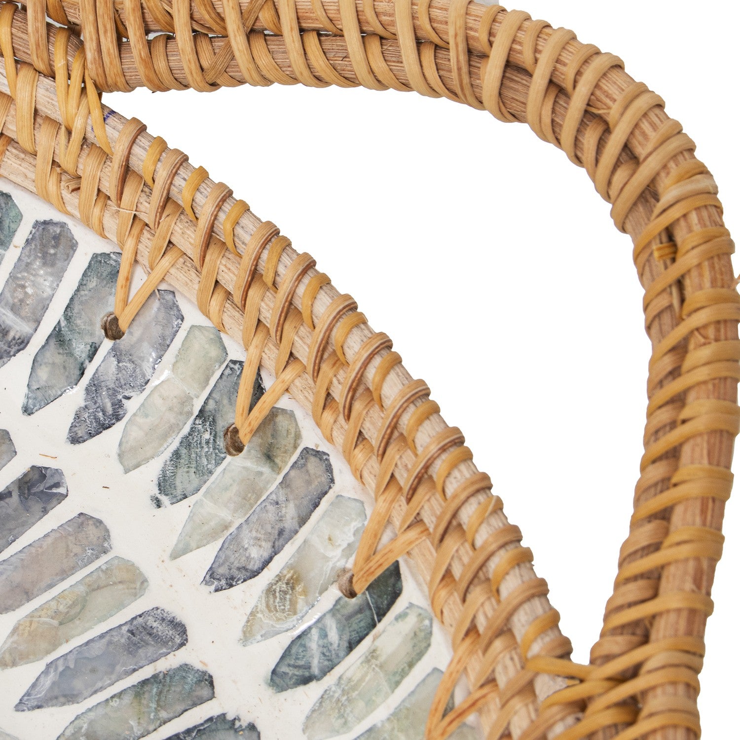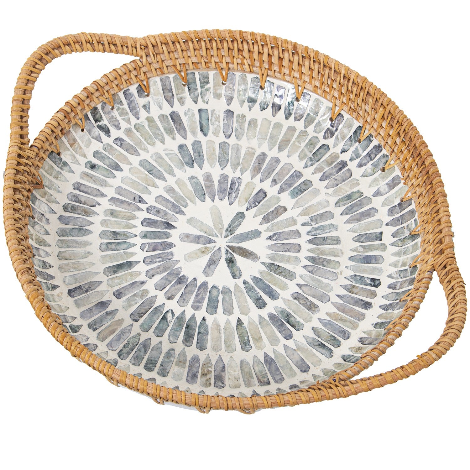 Una combinación natural y elegante. esta bandeja aporta textura, brillo suave y calidez artesanal. Ideal como base decorativa en mesas, estanterías o para crear composiciones con velas y objetos especiales.