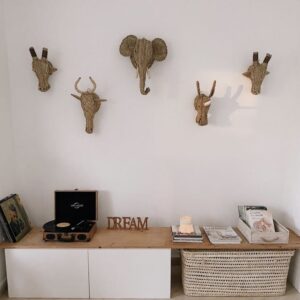 Hecha a mano con esparto, esta cabeza aporta personalidad, textura y un toque salvaje y sereno a tus paredes.
