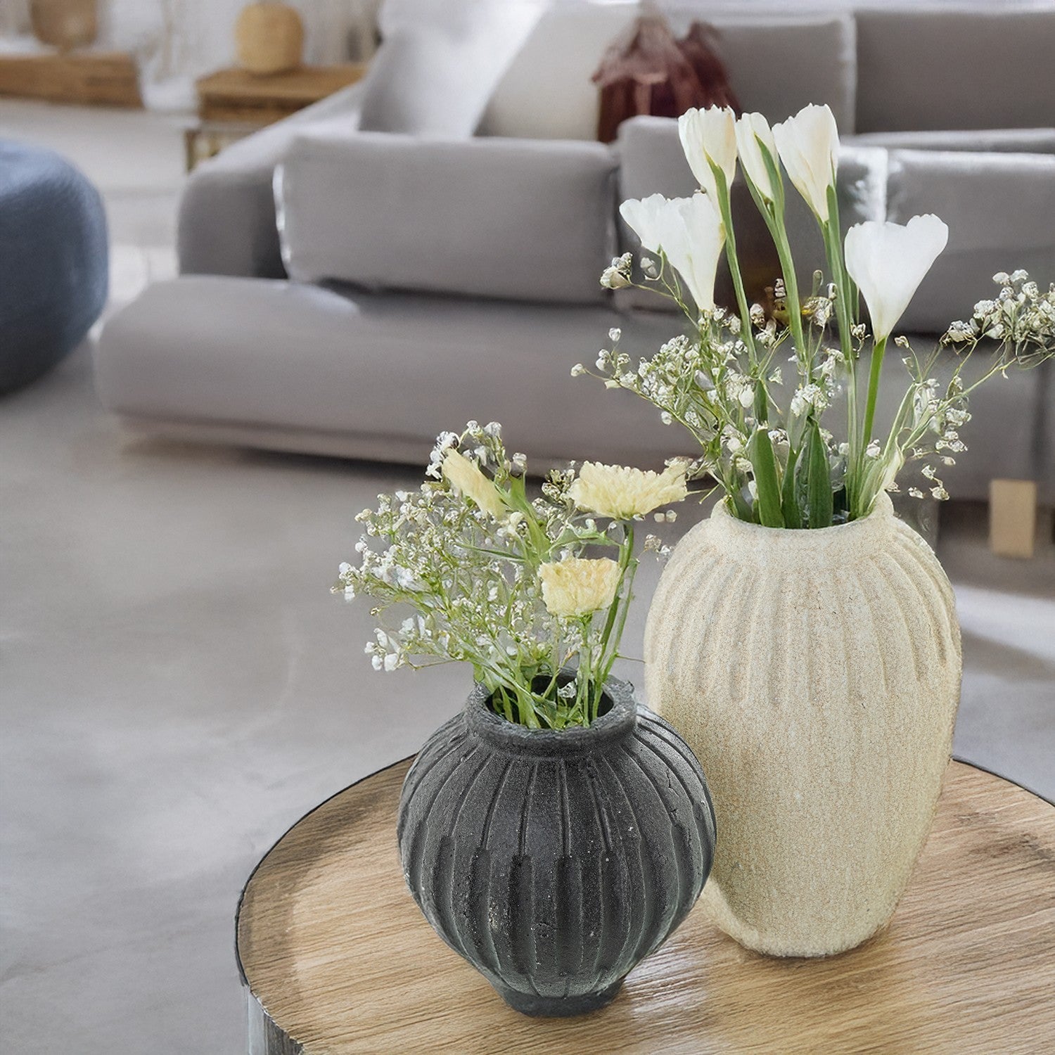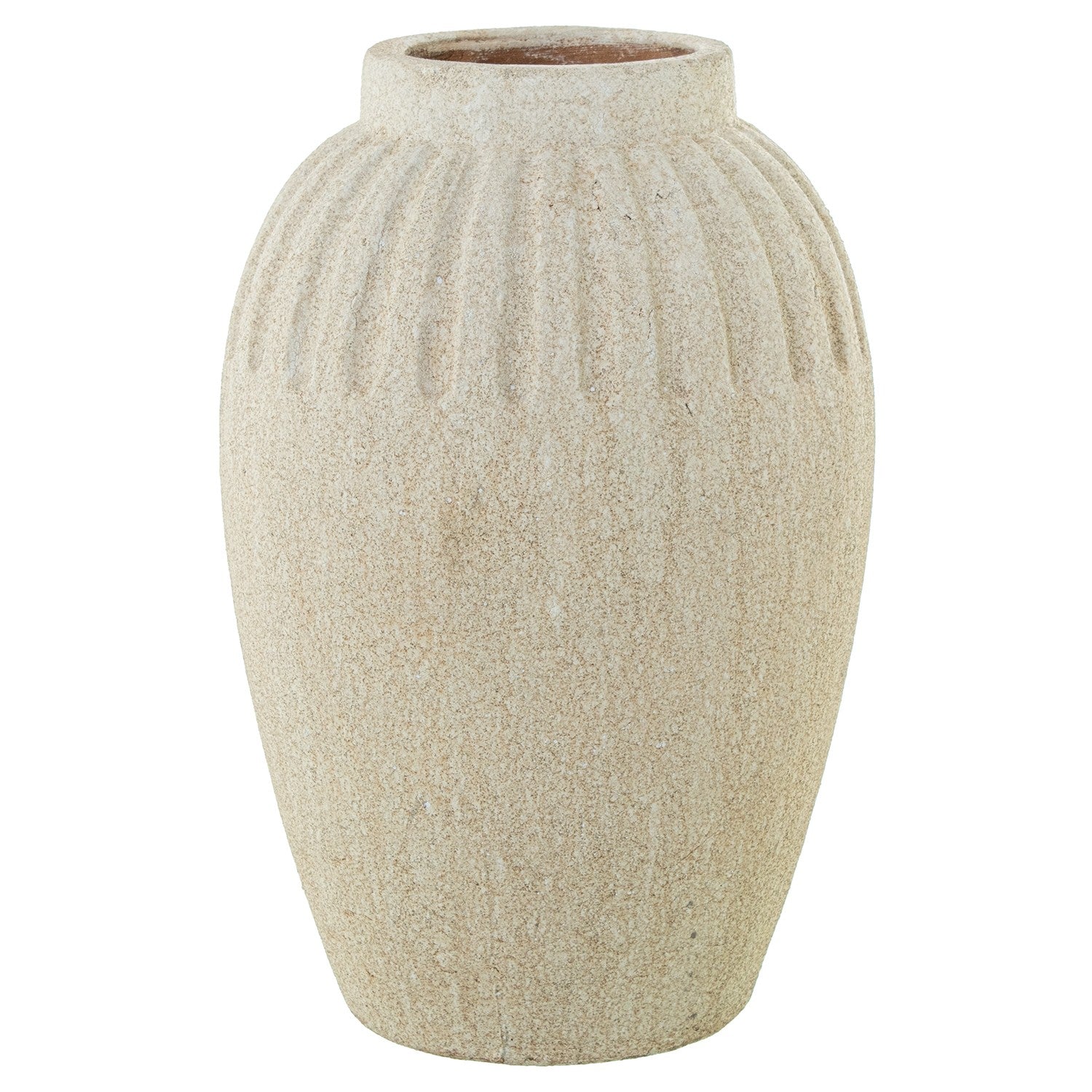 Su acabado artesanal y tonos neutros lo convierten en el complemento perfecto para interiores acogedores y con estilo natural. Ideal para flores secas o como pieza decorativa por sí sola.
