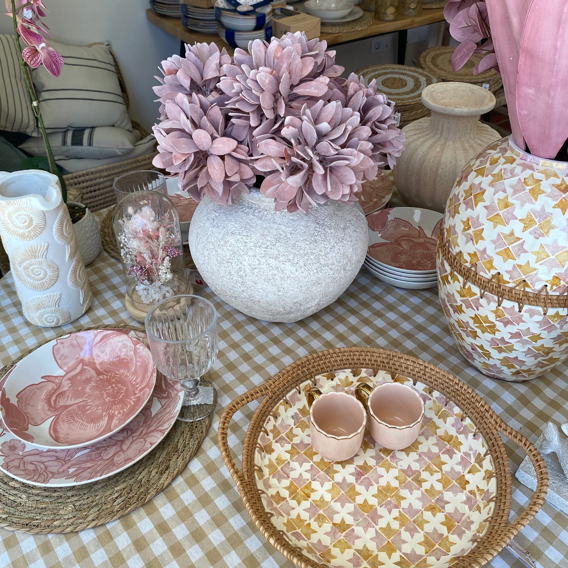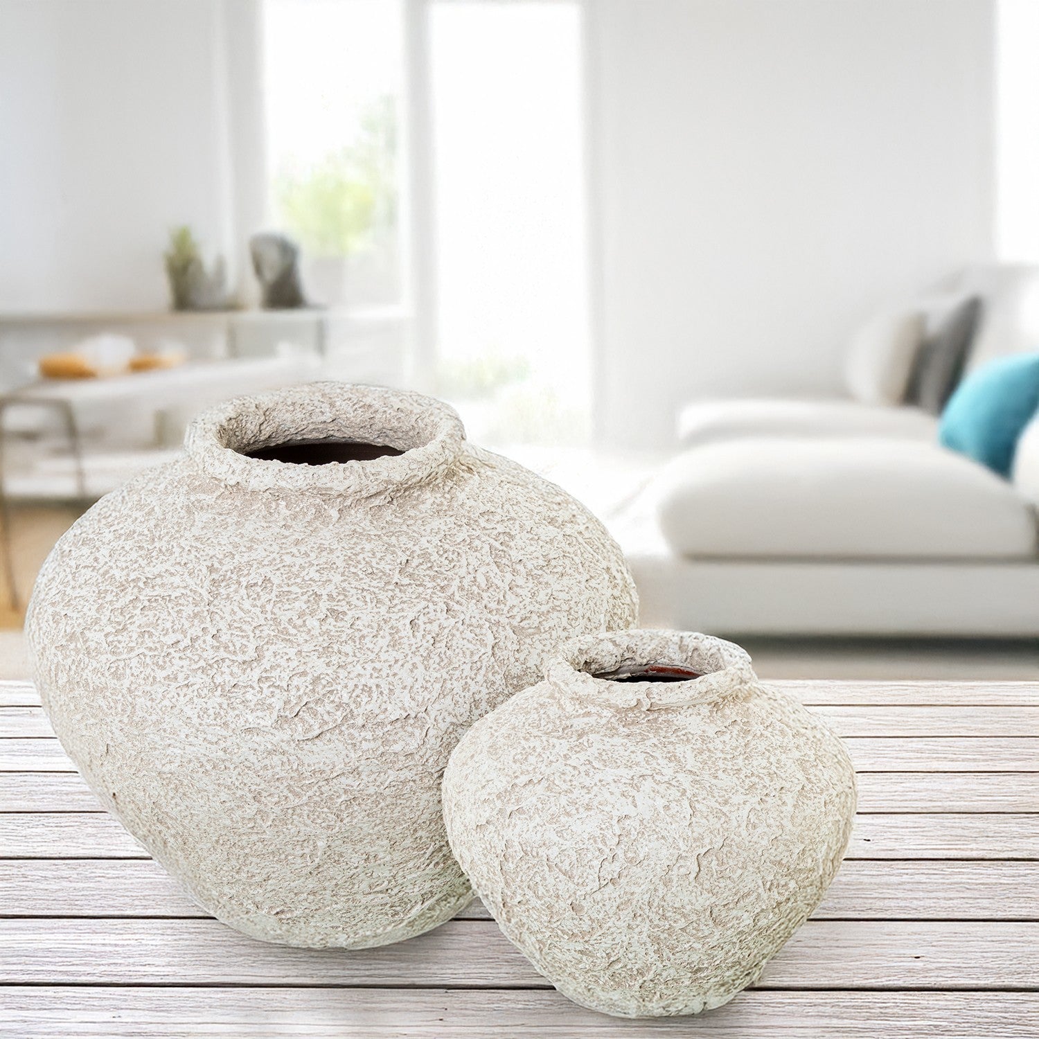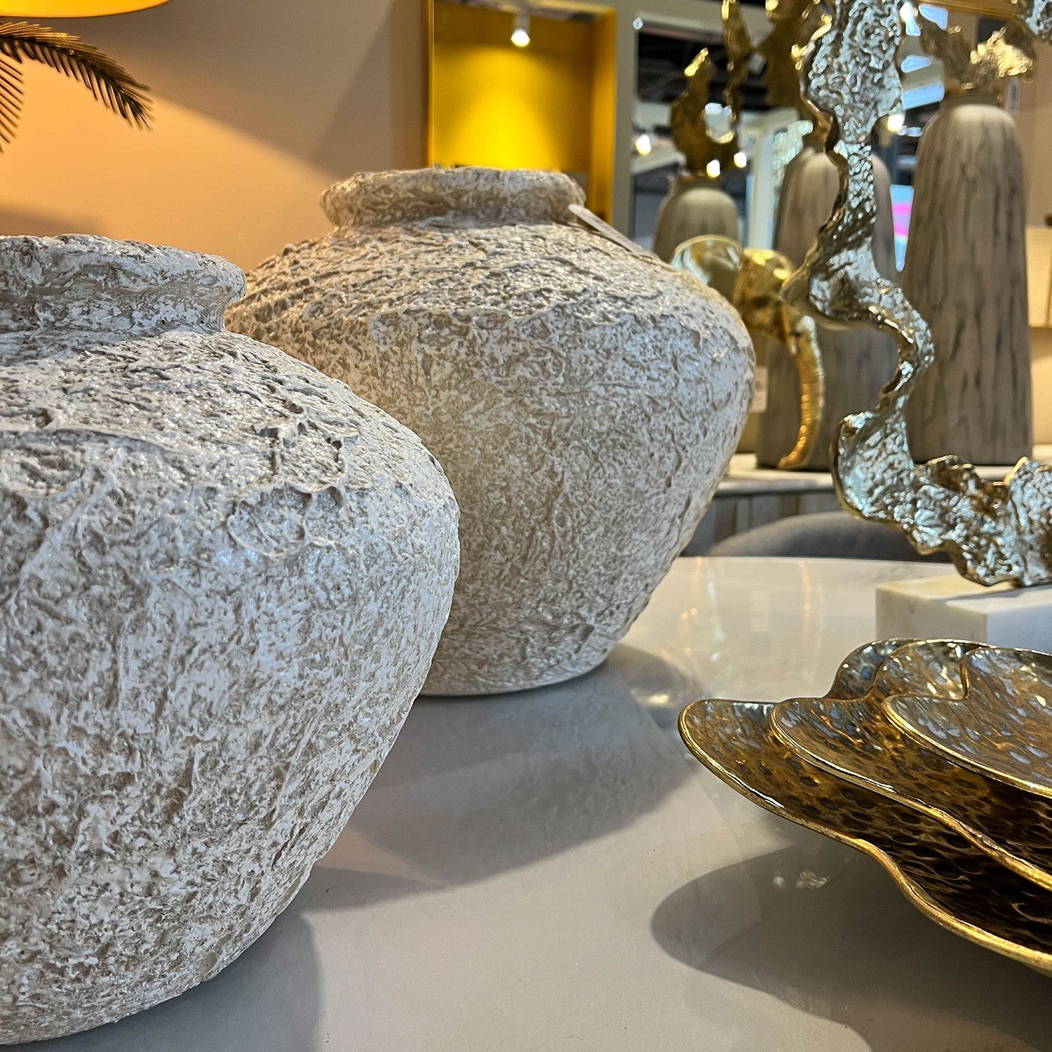 Dale un toque cálido y elegante a tu espacio con este jarrón de cerámica estilo rústico chic. Su acabado artesanal y tonos neutros lo convierten en el complemento perfecto para interiores acogedores y con estilo natural. Ideal para flores secas o como pieza decorativa por sí sola.
