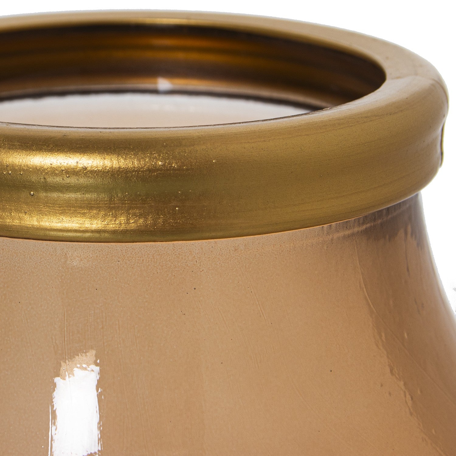 Elegancia sostenible para tu hogar. Este jarrón, hecho de vidrio reciclado en un suave tono rosa y detalles dorados en el borde, aporta un toque de sofisticación y conciencia ecológica a cualquier espacio.