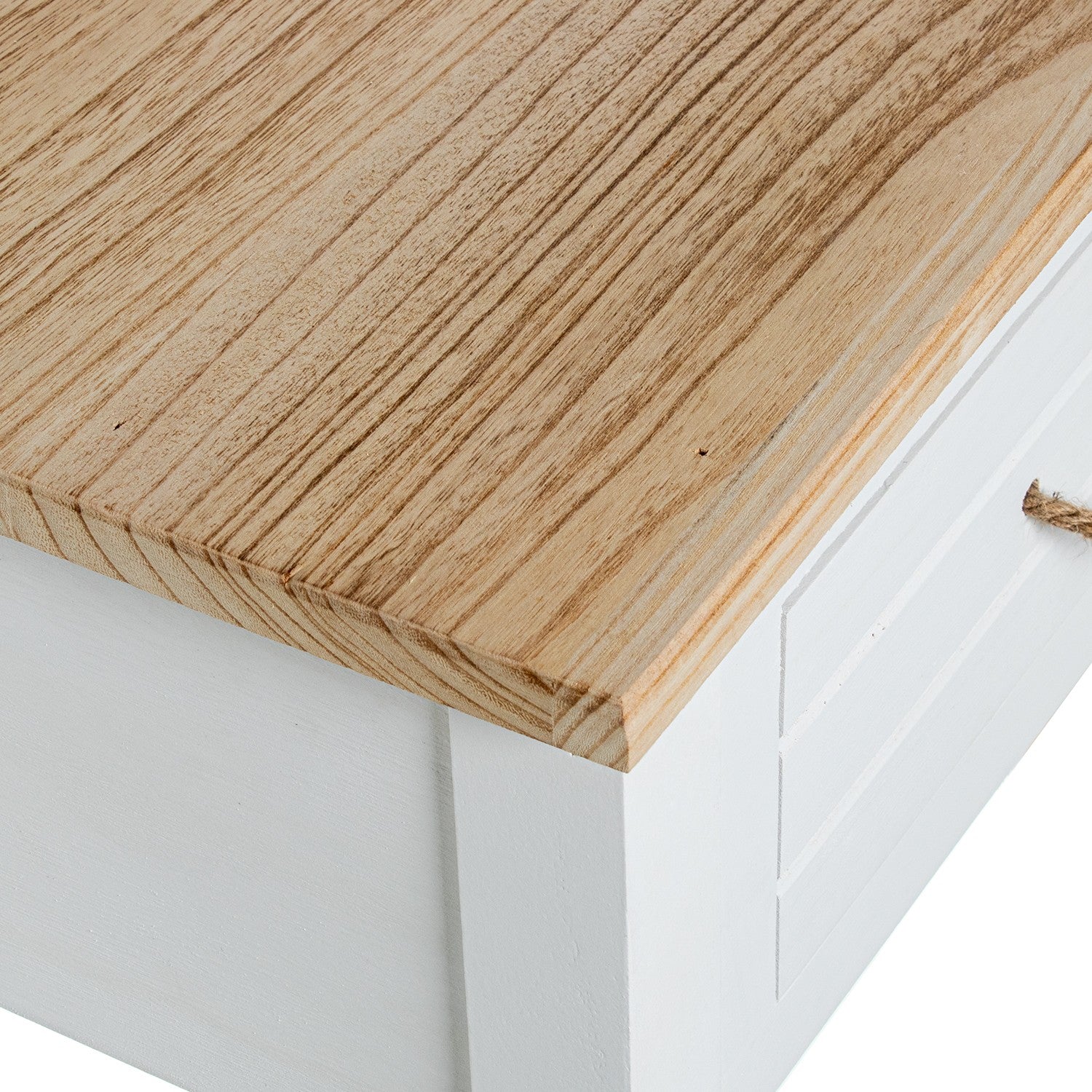 Funcionalidad y estilo en un solo mueble. Esta mesa de entrada está fabricada en DM y madera de paulownia, con un acabado blanco que aporta luminosidad y calidez a tus espacios. Sus dos cajones ofrecen almacenamiento práctico, ideal para organizar llaves, documentos o pequeños objetos del día a día.