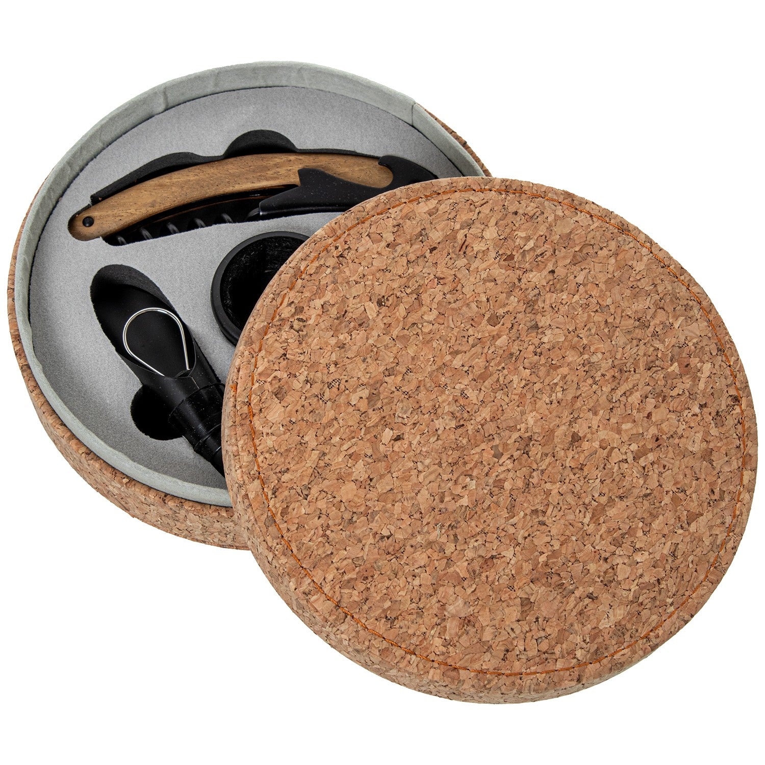 Elegancia y funcionalidad en cada brindis. Este set incluye los esenciales para disfrutar del vino, presentados en una caja de corcho natural, sostenible y con estilo. Perfecto para regalar o completar tu colección.