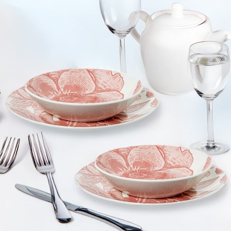 Nuestra vajilla de porcelana blanca con flores en tonos rosas combina la pureza de lo clásico con un toque romántico y moderno. Cada pieza ha sido cuidadosamente diseñada para realzar tu mesa y transformar cualquier comida en una experiencia especial.