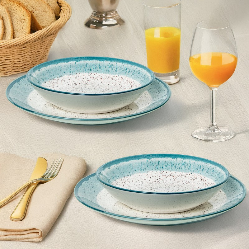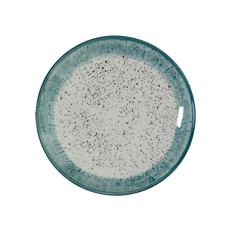 Nuestra vajilla blanca con moteado negro y borde azul es una fusión perfecta entre lo artesanal y lo contemporáneo. Cada pieza es única, con un acabado que evoca lo hecho a mano y un diseño pensado para destacar en cualquier mesa.